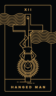 Though the hanged man is swinging upside down, the serenity of his expression seems to communicate that he is doing this of his own free will. The hanged man understands the value of self-sacrifice. One must take a step backward to move ahead.
