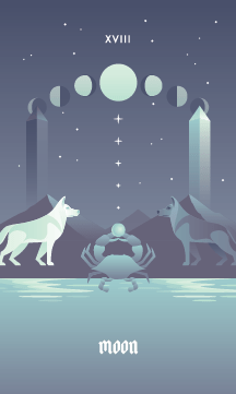 Night is the time when dreams and fantasies rule. The moon also represents instincts that we have buried in our own unconscious - they come out to play in the moonlight. But the reflections that we see springing forth can also be illusions, it is easy to lose your way in the dark.
